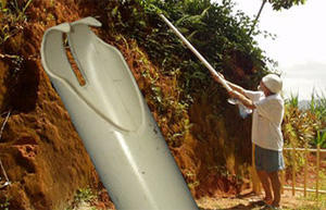The PVC gutter cleaner is a whole lot safer than climbing a ladder.