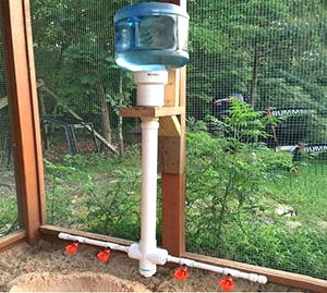 This waterer is somewhat of an automatic waterer as it can hold several gallons.