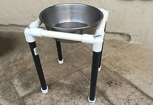 The legs of the stand can be made to height and adjust them to the size of your food and water bowls.