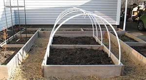 The pipes can frame a hoop greenhouse, a small square one, or even one that is built onto a wall for half a greenhouse.