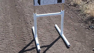 A PVC target stand makes for different levels and paces for shooting. The stand can be made to hold different items for target practice.