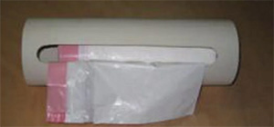 Slide the roll of trash bags through an end and pull them individually out the slit in the side.
