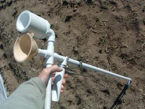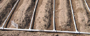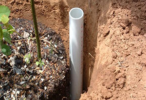 With this irrigation system, you simply take a pipe and drill a few holes and then insert it into the ground next to the plants and dump water down the pipe for a good deep watering.