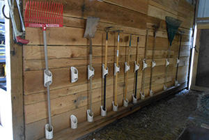 Be sure to always put your shovels, rakes, and hoes away when you are finished and you will always know where they are and this helps to keep the tools out of the weather.