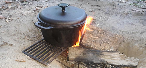 The most important part of making perpetual soup is consistency and low heat. This means you must understand your fire or cooking your skilligalee in a Dutch oven at home.
